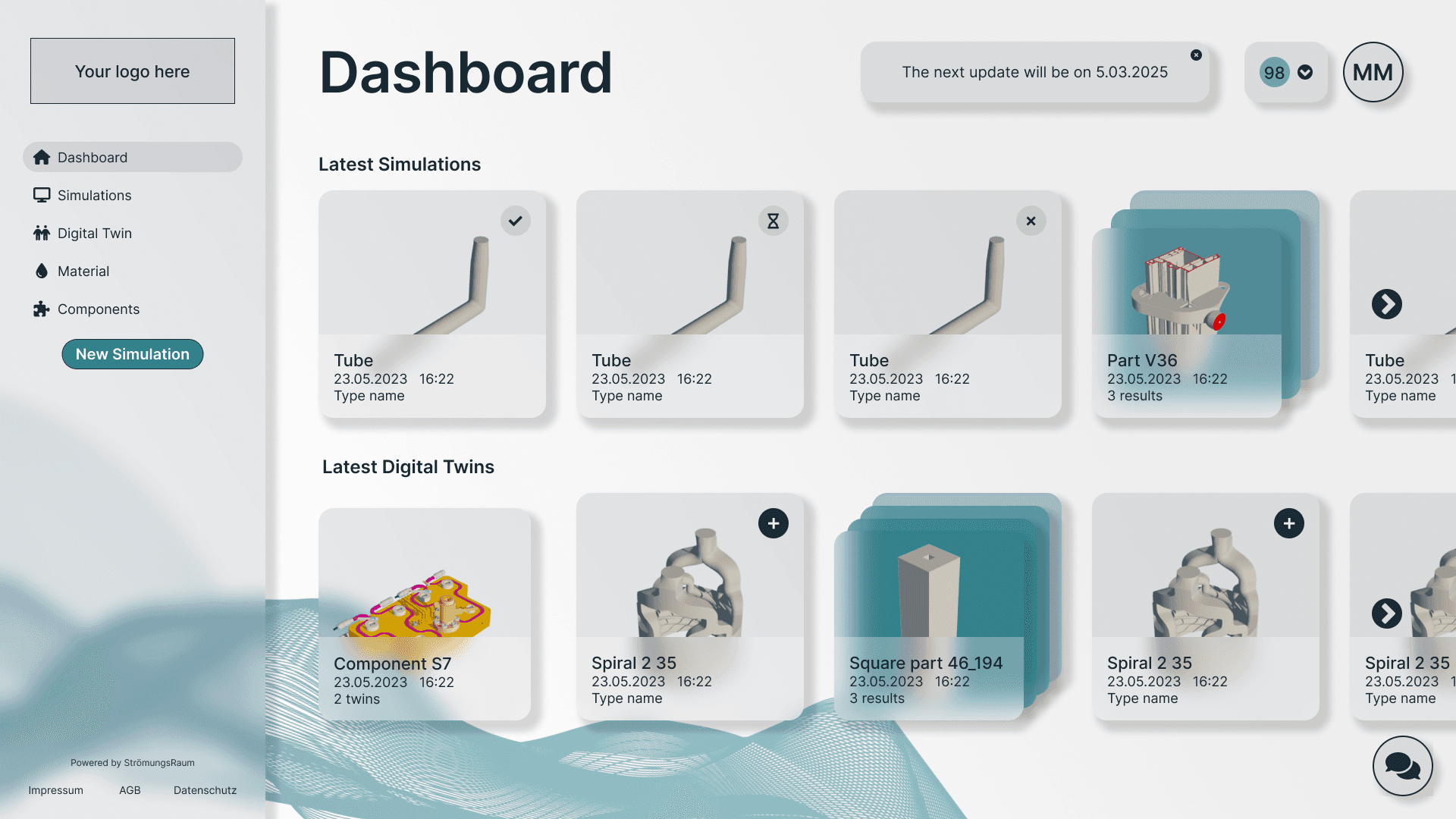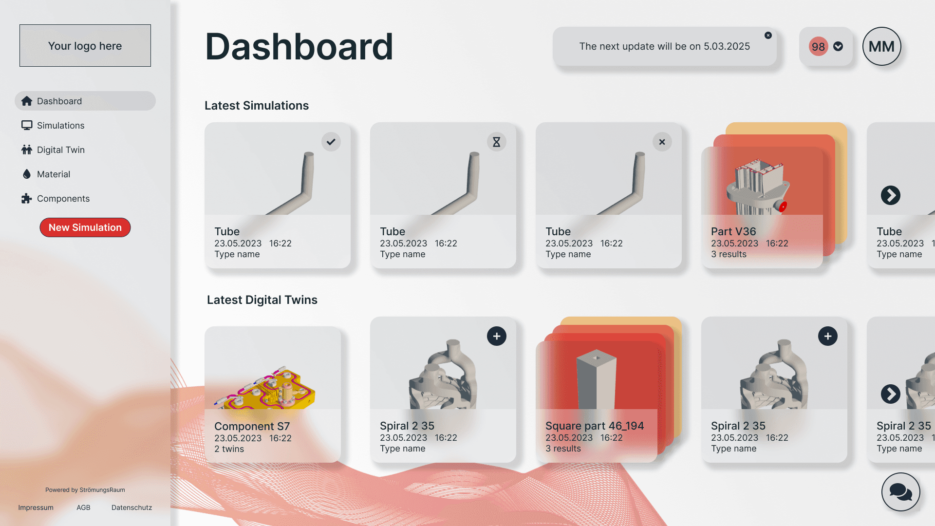 With our white-label solution, your customers and suppliers can get to know StrömungsRaum® as a fully integrated simulation platform from your company and conduct simulations independently.
